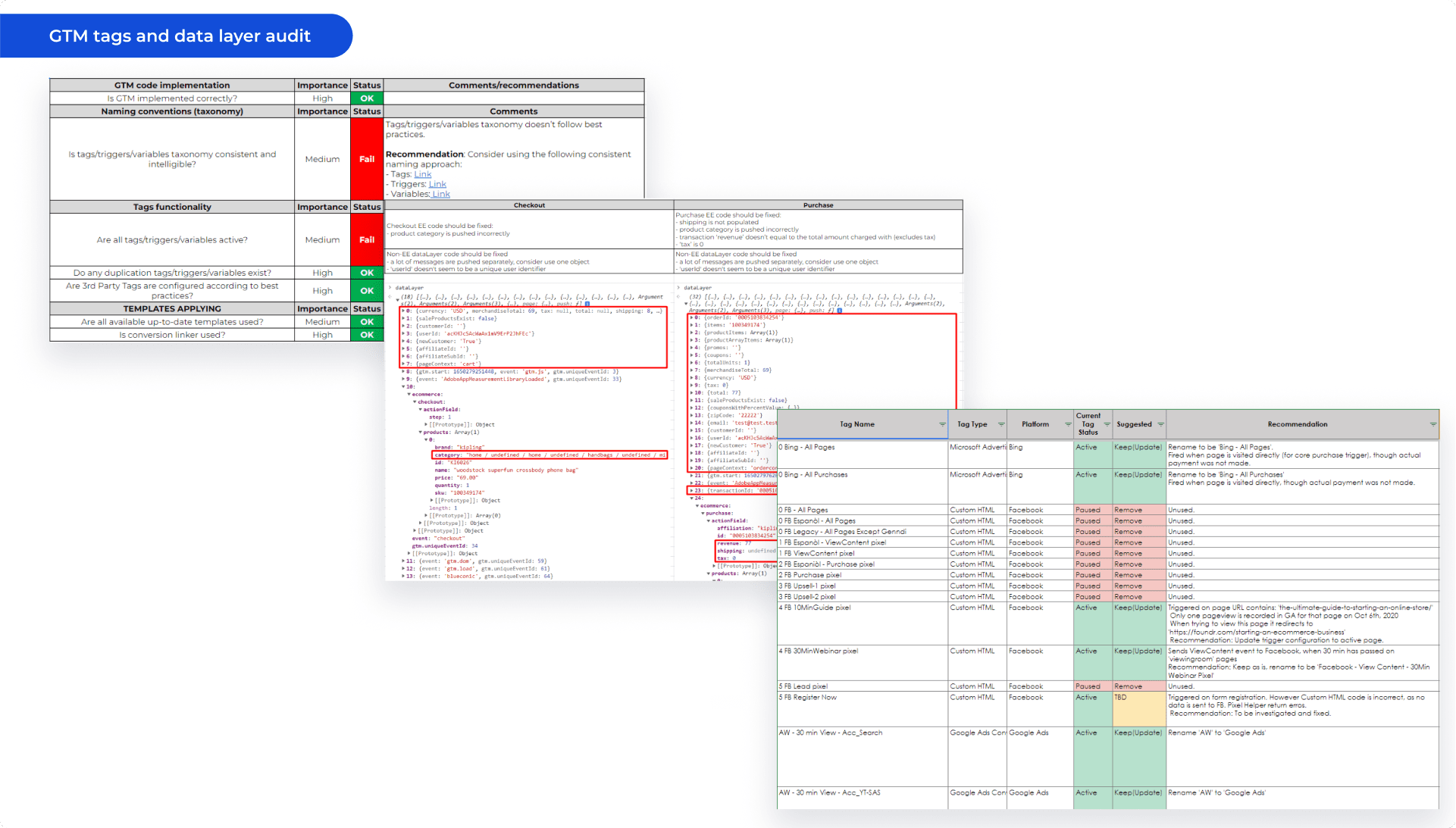 GTM tags and data layer audit